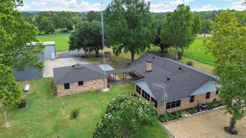 PRICED BELOW APPRAISED VALUE! Beautiful 17.71 acre OASIS w UPDATED Home and separate GUEST House! Discover the charm of country living with this stunning property w open concept home that features 2 Living, 3BR, 2BA home AND a 961 SF separate guest house w covered walkway. Main house features gorgeous kitchen w SS appliances, granite, custom cabinetry with stained glass. Perfect for those seeking tranquility and space, enjoy the ducks and fishing on the stocked pond and plenty of space for your animals. Relax on the front AND back porches that provide picturesque views of the gorgeous countryside. Other spacious outbuildings are 30x40 Barn w electricity, 20x40 RV Shop w electricity, 3 space carport plus 2 extra garages for extra storage, farm equipment and terrain vehicles. Both homes have a deep well and septic system. Fast speed Internet tower. Don't miss this opportunity to own a piece of paradise with all the amenities you need for fabulous living.